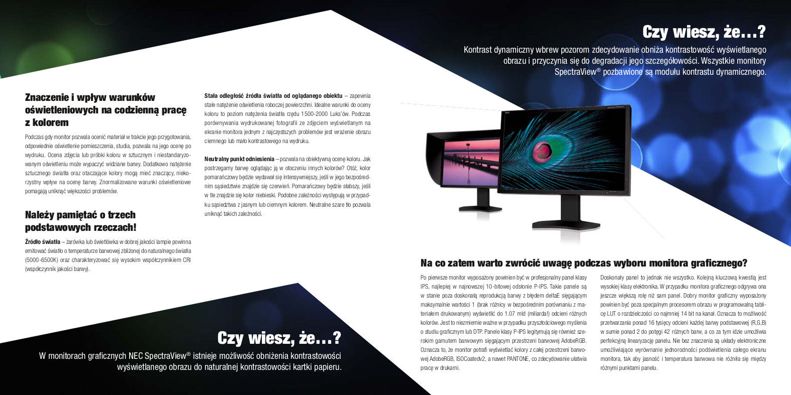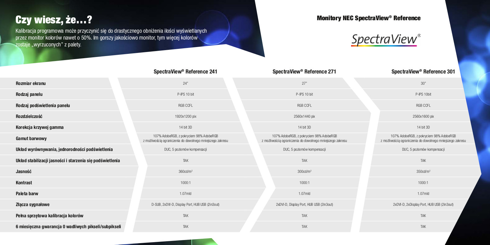 Profesjonalne monitory graficzne z selekcjonowaną matrycą, umożliwiają kalibrację sprzętową oraz zapewniają perfekcyjne odwzorowanie kolorów.