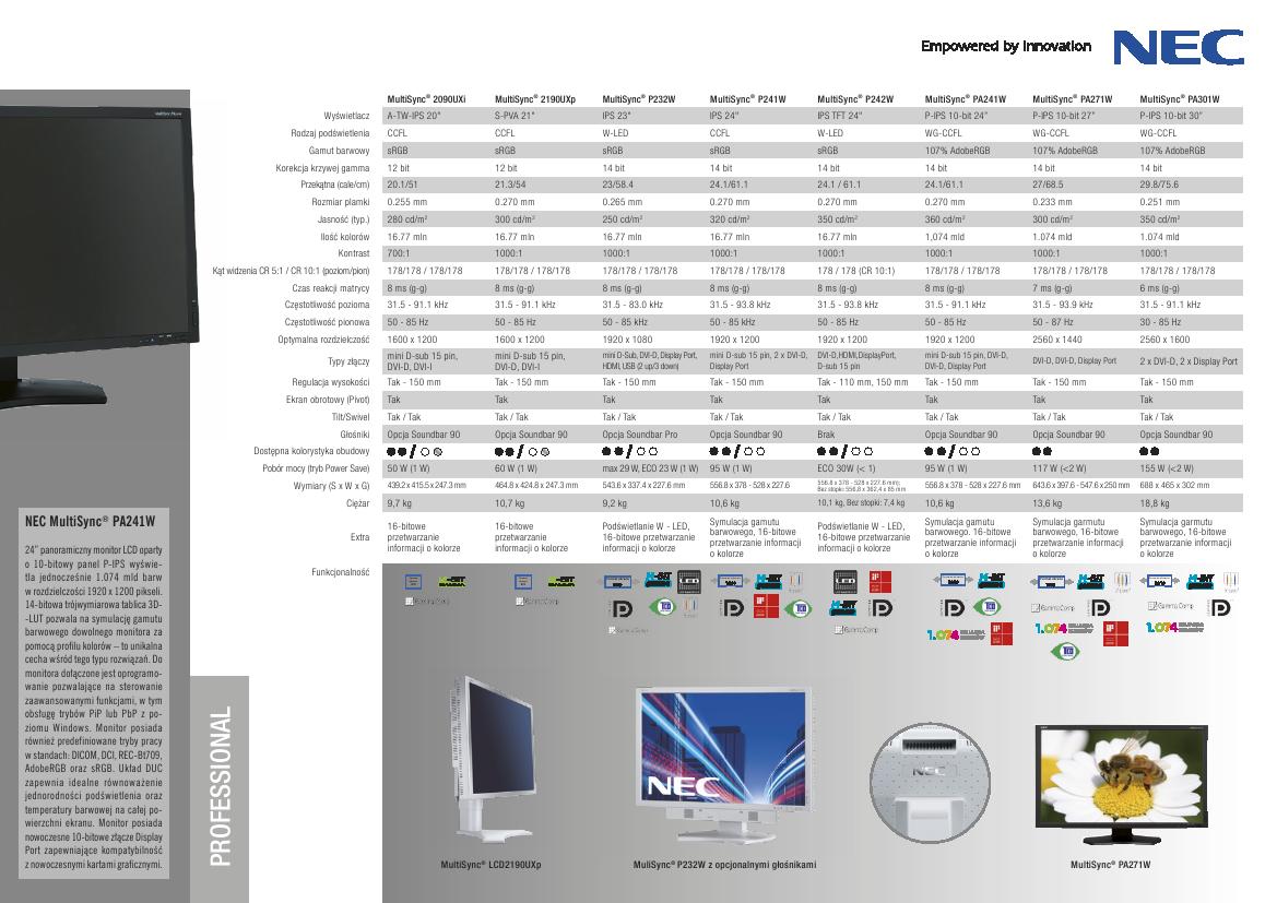 LINK DO PEŁNEGO ZESTAWIENIA MONITORÓW DESKTOP NEC - strona producenta